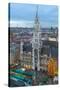 Overview of the Marienplatz Christmas Market and the New Town Hall, Munich, Bavaria, Germany