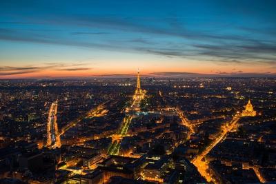 PARIS, FRANCE - May 5, 2016: Beautiful Paris skyline view Eiffel tower during light show at dusk, P Photo Print