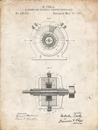 PP1090-Vintage Parchment Tesla Alternating Current Generator Poster Giclee Wall Art