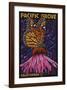 Pacific Grove, California - Monarch Butterfly - Paper Mosaic Wall Art Print