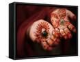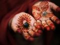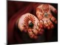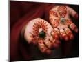 Pakistani Girl Displays Her Hands Painted with Henna Paste