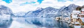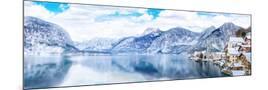 Panorama View of Hallstattersee Lake and Mountain in Daylight with Snow. Landscape View of Famous H Photo Print