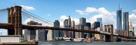 Panoramic Skyline of New York City, Manhattan and Brooklyn Bridge, One World Trade Center, US