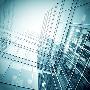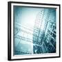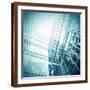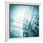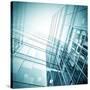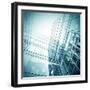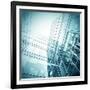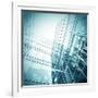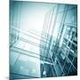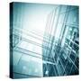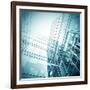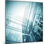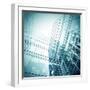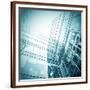 Panoramic and Perspective Wide Angle View to Steel Blue Background of Glass High Rise Building Photo Print