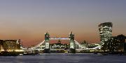 Panoramic view of Tower Bridge framing St. Paul's Cathedral with the City tower, London