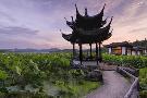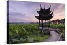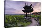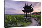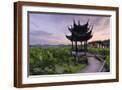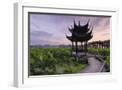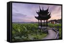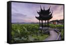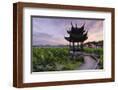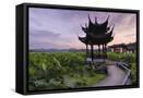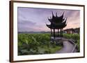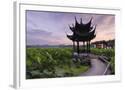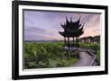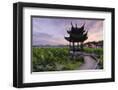 Pavilion, Lotus Field and Zig Zag Bridge at West Lake, Hangzhou, Zhejiang, China, Asia Photo Print