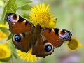 Peacock Butterfly on Fleabane Flowers, Hertfordshire, England, UK
