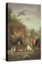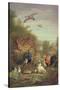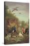 Peacock and Rabbits in a Landscape Giclee Wall Art