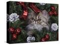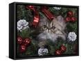 Persian Cat Brown Tabby Kitten Amongst Christmas Decorations, Texas, USA