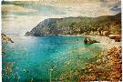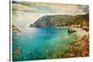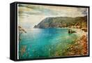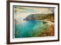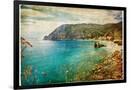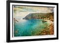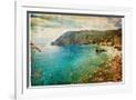 Picturesue Italian Coast - Artwork In Retro Painting Style Wall Art Print