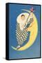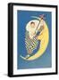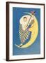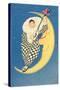 Pierrot Playing Mandolin on Moon Wall Art Print