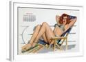 Pin Up in Bikini on a Deckchair on a Boat, Tanning, from Esquire Girl Calendar 1950 (March)