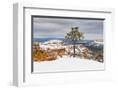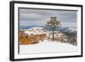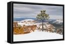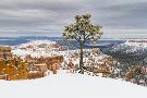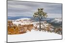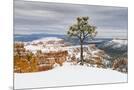 Pine tree in winter clings to the rim at Bryce Canyon National Park, Utah, USA