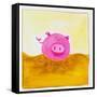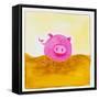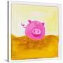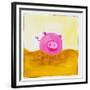 Pink Pig with Corkscrew Tail Giclee Wall Art