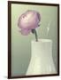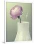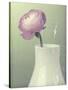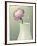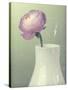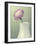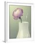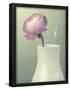 Pink Rannunculus in White Vase on Green Giclee Wall Art