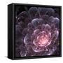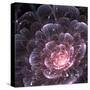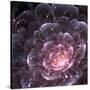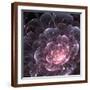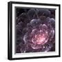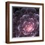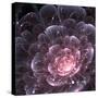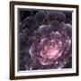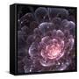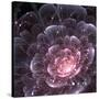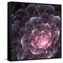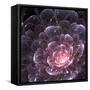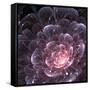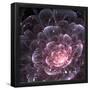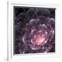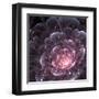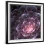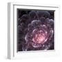 Pink abstract flower with sparkles on black background, fractal illustration Wall Art Print