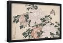 Pink and Red Peonies Blown to the Left in a Breeze and a Butterfly Giclee Wall Art