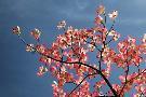 Pink dogwood tree against blue sky, Lexington, Kentucky