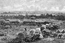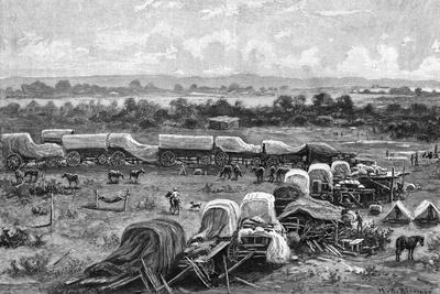 The Pioneer Force of Cecil Rhodes and the South Africa Company at the Tuli River in Mashonaland Southern Rhodesia present day Zimbabwe during the annexation of the region by the British Picture shows the laager or camp of the Pioneer Corps