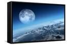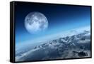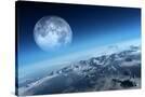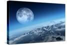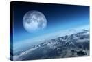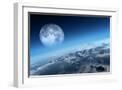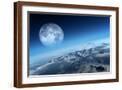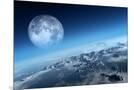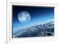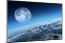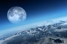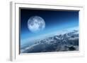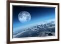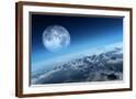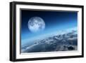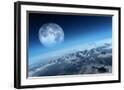 Planet Earth Icy Ocean and Rocky Islands with Moon Seen from Space (Texture Moonmap for 3D Art From