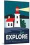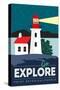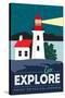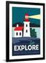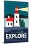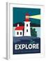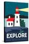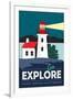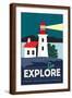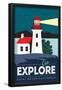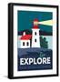 Point Reyes, California - Go Explore (Lighthouse) - Vector Style - Lantern Press Artwork Wall Art Print
