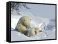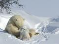 Polar Bear (Ursus Maritimus) Mother with Twin Cubs, Wapusk National Park, Churchill, Manitoba