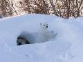 Polar Bear with Cubs, Ursus Maritimus, Churchill, Manitoba, Canada