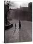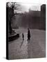 Policeman Talking to Lost Child on a Cobbled Street in Edinburgh, Scotland