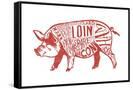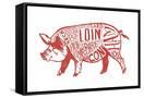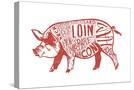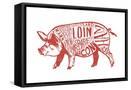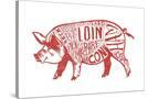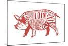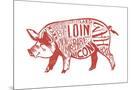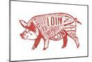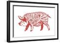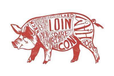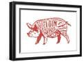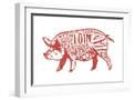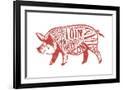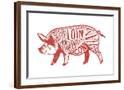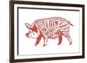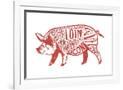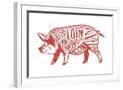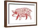 Pork - Butchers Block Meat Cuts - Red Pig on White - Lantern Press Artwork