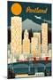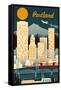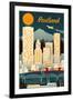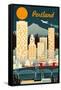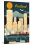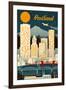Portland, Oregon - Retro Skyline Wall Art Print