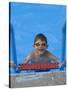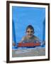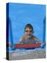 Portrait of 9 Year Old Boy in Swimming Pool, Kiamesha Lake, New York, USA