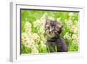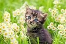 Portrait of Cute Little Kitten Outdoors in Flowers