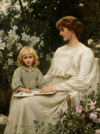 Portrait of a Mother and a Daughter Reading a Book