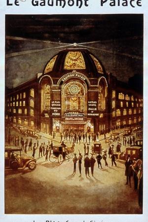 Poster for Gaumont Palace movie theater in Paris, 20's. This movie theater opened in 1911 : 5000 places, 1930 : 6000 places it was destroyed in 1972; (add.info.: Affiche pour le cinema Gaumont Palace, place Clichy a Paris, le plus grand cinema du monde, annees 20. Ce cinema a ouvert ses portes en 1911 avec 5000 places ; en 1930 il en comptait 6000. Il fut demoli en 1972 --- Poster for Gaumont Palace movie theater in Paris, 20's. This movie theater opened in 1911 : 5000 places, 1930 : 6000 places it was destroyed in 1972);.