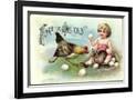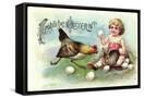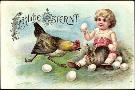 Präge Litho Glückwunsch Ostern, Kind, Hase, Henne, Eier