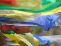 Praying Flags Against Blue Sky at Pepe La Pass, Phobjikha Valley, Gangtey, Bhutan