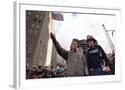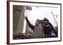 President George W. Bush Waves an American Flag after Addressing Recovery Workers in Nyc Photo Print