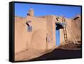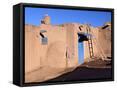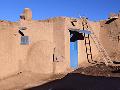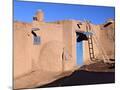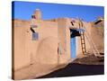 Pueblo House with Blue Door and Oven, Taos, New Mexico, USA