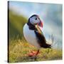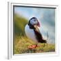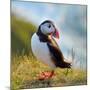 Puffin Standing On Grassy Cliff