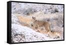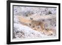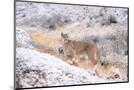 Puma on snowy hillside, Torres del Paine National Park, Chile
