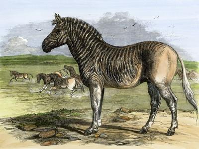 Quagga (Couagga) from Africa at the London Zoo, Now Extinct Species, 1850S. Colour Engraving of The Giclee Wall Art