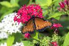 Queen butterfly, red Pentas, USA