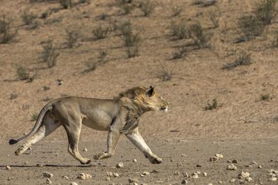 RF - Lion (Panthera leo) male running in desert, Kgalagadi Transfrontier Park, South Africa