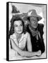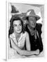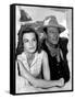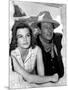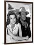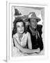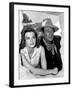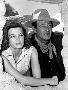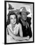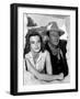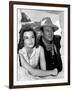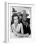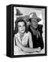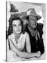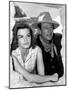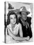 RIO BRAVO, 1959 directed by HOWARD HAWKS On the set, Angie Dickinson and John Wayne (b/w photo)