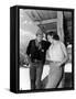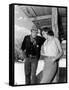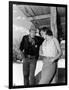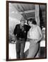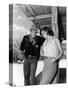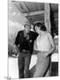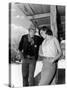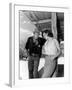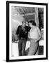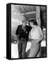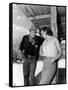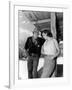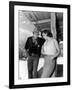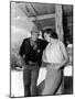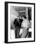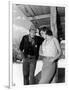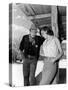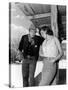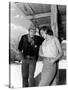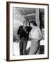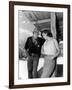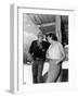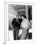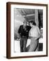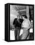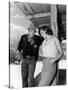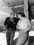 RIO BRAVO, 1959 directed by HOWARD HAWKS On the set, John Wayne and Angie Dickinson (b/w photo)