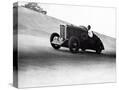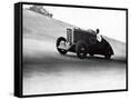 Racing Car on Banked Track (B/W Photo) Giclee Wall Art