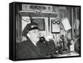 Railroad Conductor Uses an on Board Telephone to Communicate with Other Parts of the Train