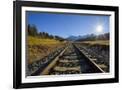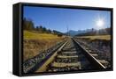 Railroad track with sun, Gerold, Kruen, Krun, Upper Bavaria, Bavaria, Germany, Europe