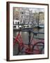 Red Bicycle by the Herengracht Canal, Amsterdam, Netherlands, Europe