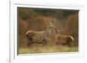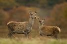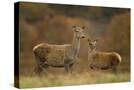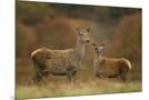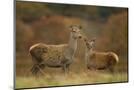 Red Deer (Cervus Elaphus) Hind and Young Calf, Bradgate Park, Leicestershire, England, UK, November